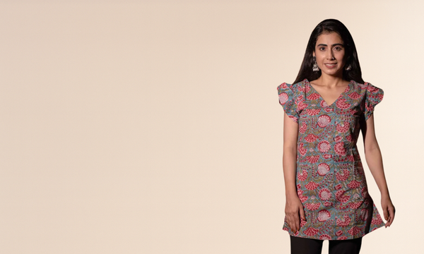 Sindhu Red Handblock Cotton Corset Long Kurti